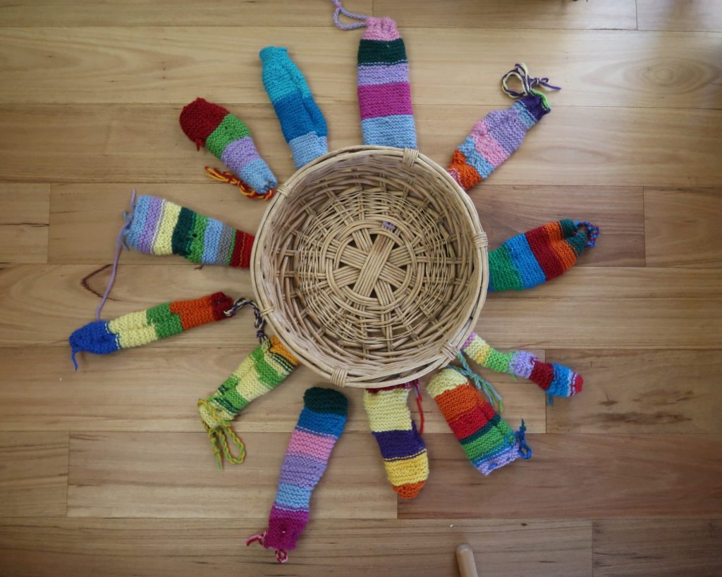 Class Two have been busy knitting with Jilly and Erin. They have finished their recorder bags, ready for beginning recorder lessons this term. Now they are learning the purl stitch by knitting a rainbow ball.